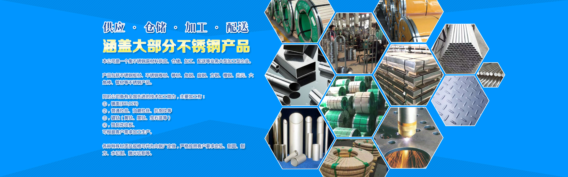 具体包括不锈钢板材、不锈钢卷材、棒材、角钢、扁钢、方钢、槽钢、光元、六角棒、管材等不锈钢产品。